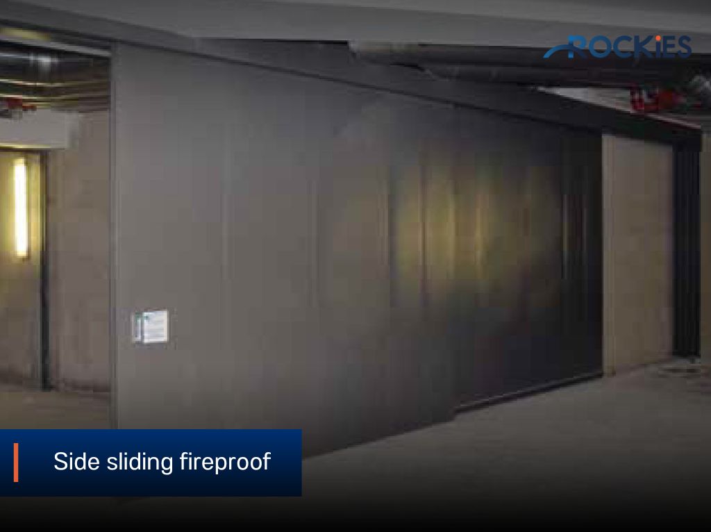 Side slide fire rated doors open or close by sliding on the side. Can be opened or closed by moving side to side. Doors may have automatic movement or be manually operated to open or close. For large side sliding fire rated doors Mobility aids may be installed so that they can be easily and conveniently opened or closed.